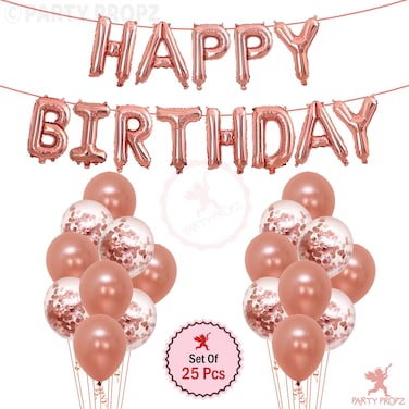 Party Propz 25Pcs Rose Gold Happy Birthday Foil Balloon, Confetti And Metallic Balloons Combo For Birthday Decoration Items For Girls