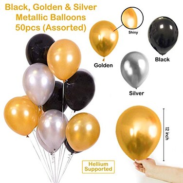 Party Propz Happy Birthday Foil Balloons Set with 2 Pcs Silver Fringe Curtain & 50 Pcs Metallic Balloons Combo