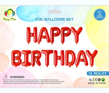 Party Time 1 Set of 16inches Red Happy Birthday Foil Balloon For Birthday Party Decoration, Birthday Banner Backdrop - Birthday Party Supplies