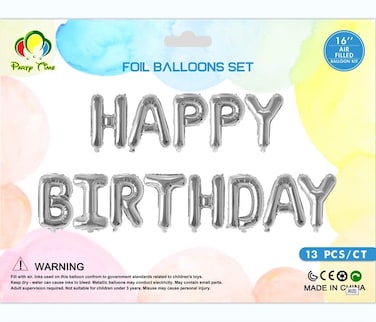 Party Time 1 Set of 16inches Silver Happy Birthday Foil Balloon For Birthday Party Decoration, Birthday Banner Backdrop - Birthday Party Supplies