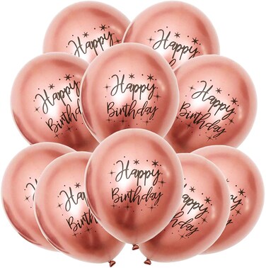 Party Time 10-Pieces Rose Gold 12 inch High-Quality Balloons Happy Birthday Latex Chrome Balloon for Birthday Party Decoration - Birthday Supplies