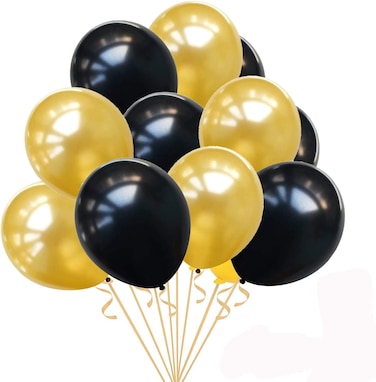 Party Time 100-Pieces 12inch Gold and Black Best Quality Latex Balloons For Birthday Party Decoration, Wedding, Engagement, Anniversary Balloons Decorations