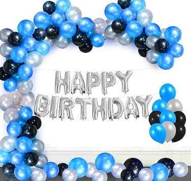 - • Package include 1pc silver happy birthday foil balloon, 33pcs blue - 33pcs black and 34pcs silver latex balloons. • These foil balloons and latex balloons are strong and long lasting,support helium or air. All the balloons are durable and could be saved for next wonderful party. • This elegant birthday decorations set gives you everything you need the surprise party.Create a unique party at an amazing price • Our balloons set is sure to please no matter what event you're planning.Great for all occasions Birthday Party, Celebration Party, School Party, Everyday Life Decoration, Night-Out Party, Graduation Party, Wedding and Engagement Party, Prom and so on.
