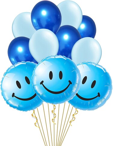 Party Time 11-Pieces Blue Smiley Foil Balloon and Latex Balloons Set For World Smile Day Decoration and Birthday Balloon Decoration, Smiley Balloons - Party Supplies