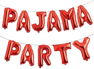 Party Time 11-Pieces Pajama Party Letter Banner Foil Balloons 16", Alphabet Mylar Balloons for Wedding Bachelorette Weddings Bridal Shower Birthday Party (Red)