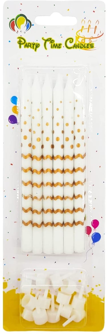Party Time 12-Pieces 5inch Gold Polka and Stripes Birthday Candles, Candle for Wedding, Bridal Shower, Baby Shower, Birthday Cake Decoration - Cake Topper