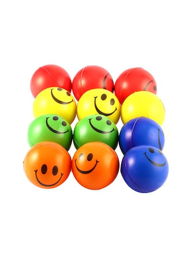 Party Time 12-Pieces Multicolor Smiley Pressure Balls for Children and Adults Stress Relief, Smile Squeeze Ball - Smiley Face Stress Balls