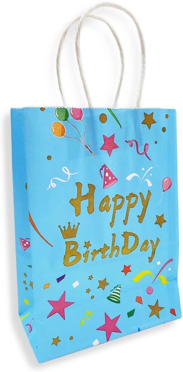 - PRODUCT DESCRIPTION: 【High-quality Gift Paper Bags】Happy Birthday gift bags is made of ultra-high-quality kraft paper material, which is more tough and not easy to tear. and it is carefully made with super strong glue, sturdy and durable, and can withstand a weight of at least 8 pounds. It has a twisted paper handle for carrying Comfortable, the size is 21158cm/8.25.93.1 inches (length x width x height). which can meet various packaging needs 【Classic Design】The kraft paper bags have "Happy Birthday" printed on the front and back. The packaging bag as a birthday gift is simple and elegant. Please always prepare these small bags so that you can use them to package goods or goods immediately. 【Wide Application】excellent size, these high-quality paper gift bags can be used as business gift bags, wedding welcome bags, wedding gift bags, baby shower bags, Thanksgiving bags, teacher appreciation gift bags, Thank you gifts for volunteers or employees, Mother's Day and other holiday gift bags, party gift bags 【Reusable】 These kraft paper gift bags are made of 100% recycled paper. Replace the white plastic bags with these super eco-friendly paper bags. You can easily recycle and reuse the paper bags. They are durable and affordable 【Risk-free Purchase】 We are happy to produce and provide quality products for all customers. Use our Happy Birthday gift bag set to wrap your thank you gifts for your friends and family. Happy Birthday gift bags with handles contains 12 paper bags.