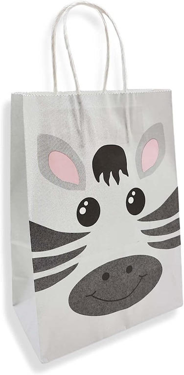Party Time 12pcs Zebra Kraft Bags for Safari Theme Party Supplies, Animal Gift Bags, Souvenier Bags, Candy Bags with Handle for Party Favors- Safari Birthday Party Supplies