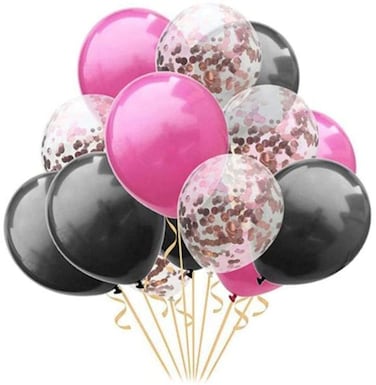 Party Time 15-Pieces 12" Pink & Black Balloon with Rose Gold Confetti balloon Set For Wedding Engagement Bridal Shower Minnie Mouse Birthday Party Decoration - Party Supplies