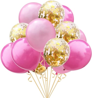 Party Time 15Pcs 12inch Clear Latex Ballons and Golden Sequins Confetti Ballon Wedding Decoration Happy Birthday balloons Party Supplies, Pink & Golden