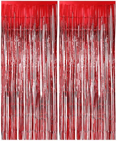 - Product Details: Material: Foil Quantity: Pack of 2pcs Size: 2m x 1m Color: Red Design: Shiny This is perfect for any occasion backdrop.