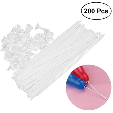 Party Time 200-Pieces 42cm White Balloon Sticks Holders with Cups for Wedding, Party, Holidays, Anniversary Birthday Decoration - Party Supplies