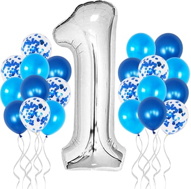 Party Time 22-Pieces Blue Theme 1st Birthday Balloon Deoration Set Foil Balloons & Latex Balloons For 1st Birthday, Wedding Anniversary Deoration - Party Supplies