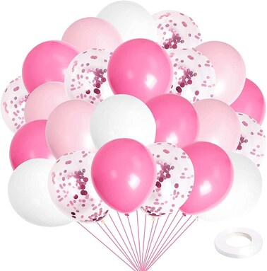 Party Time 24-Pieces 12 inches Pink, Light Pink and White Latex Balloon & Confetti Balloons Balloons Set with Ribbon Roll For Mother's Day, Baby Shower, Bridal Shower, Wedding Décor & Birthday Party D