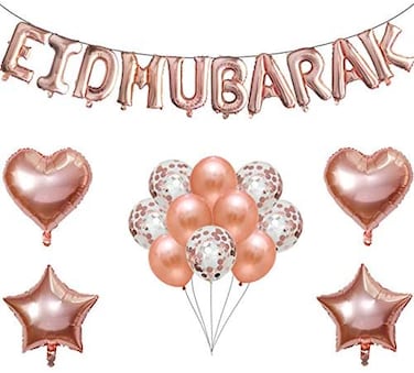 Party Time 24-Pieces Rose Gold EID MUBARAK Balloon Letter Balloons with 18" Star, Heart Foil Balloon Ramadan Decoration EID Balloons for Muslim EID Party Supplies