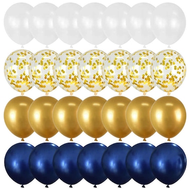 Party Time 28-Pieces 12inch Gold & Blue Theme Balloons Set with Confetti Balloon, Metallic Balloon and Latex Balloons For Wedding Birthday Party Decoration - Party Supplies