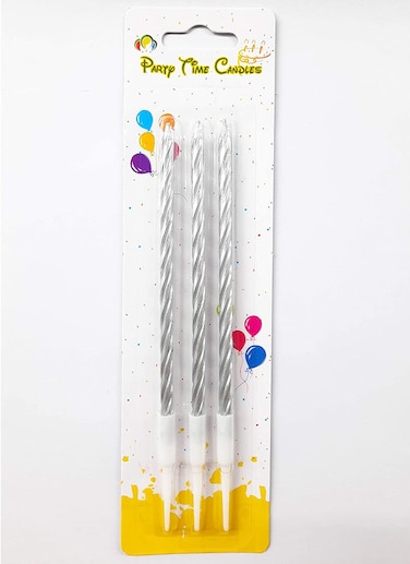 Party Time 3-Pieces Silver Long Spiral Shiny Candles Kids Adult Birthday Cake Decoration Candles - Wedding Candle Birthday Candle Cake Topper Birthday Party Decorations