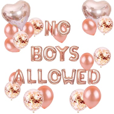 Party Time 35-Pieces Rose Gold Pajama Party Decorations For Girls Rose Pink NO BOYS ALLOWED Foil Balloon Banner Balloons Supplies Woman Sleep Party Favors Pack