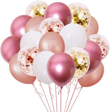 Party Time 40-Pieces 12inch Rose Gold Birthday Balloons Kit, Rose Gold Pink White Gold Confetti Rose Gold Confetti Latex Balloons for Girls Birthday Party,Wedding,Bridal Shower,Valentines Day Party Bi