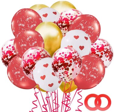 Party Time 42 Pieces Latex Balloon Sets Valentines Day Balloons Love Heart Balloons Romantic Latex Balloons Photo Props for Wedding Anniversary Proposal - Valentines Day Decoration
