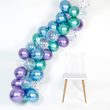 Party Time 47-Pieces Green Blue & Purple Chrome Balloon and Confetti Balloon Arch Decoration Set - For Birthday Party, Bridal Shower, Proposal and Wedding Decoration Kit