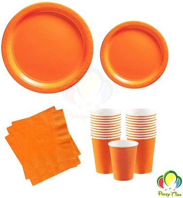 Party Time 48-Pieces Complete Party Pack Orange 9" Dinner Paper Plates , 7" Dessert Paper Plates, 9 oz Cups, 2 Ply Napkins - Birthday Party Tableware Set, Orange Party Theme