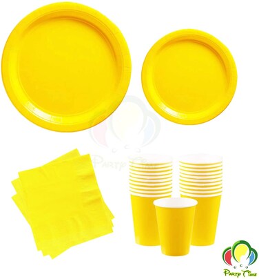 Party Time 48-Pieces Complete Party Pack Yellow 9" Dinner Paper Plates , 7" Dessert Paper Plates, 9 oz Cups, 2 Ply Napkins - Birthday Party Tableware Set, Yellow Party Theme