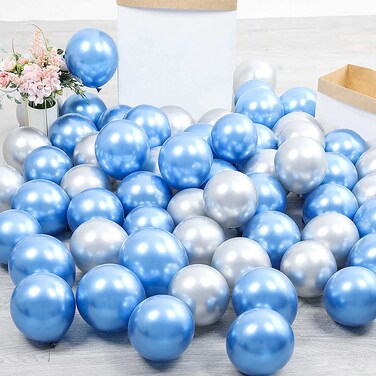 Party Time 50-Pieces 12" Blue and SIlver Chrome Balloons, Shiny Metallic Balloons, High-Quality Latex Balloons Set For Wedding Décor, Bridal Shower, Birthday Party Decorations - Party Supplies