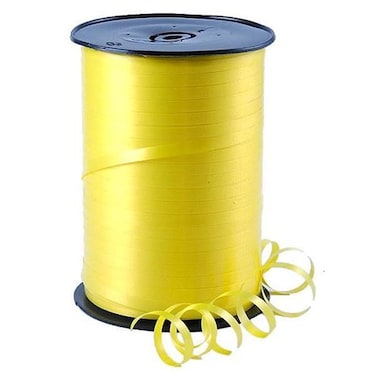- Specification: Material: Environmentally Friendly Plastic Ribbon size: L 500yards x W 0.2inch/450m x 0.5cm Reel size: 9cm x 11cm Color: Yellow Little Tips: If you want to get a very curling ribbon, you can scraping the ribbon with a very hard and thin object, then you can get a very curling ribbon, and get a different decoraion effect. Note: There is a risk of entanglement, children need to be completed under adult supervision. It is not possible to tie the balloon directly with ribbon to avoid air leakage; so it is perfect just for decoration.
