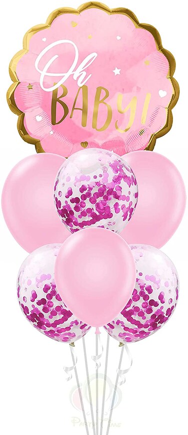 - PACKAGE INCLUDING: 1 x Pink Oh Baby Foil Balloon 22inch 3 x Pink Latex Balloons 12inch 3 x Pink Confetti Balloons 12inch NOTICES: 1.Please inflate the balloons gently in case of burst. 2.Sharp objects, dirty floors, direct sunlight, and excessive extrusion will cause to damage or burst. 3.Please frequently inflate the balloons in winter or cold days, deflate them in summer or hot days. 4.Please inflate these balloons the same day you need to use them, one time inflating of hydrogen or helium usually keeps balloons floating about 6-14 hours.