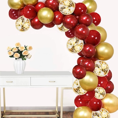 Party Time 70pcs 10" Red Balloon Garland Kit – Matte Latex Balloon – Ruby Balloon and Gold Metallic Balloon and Confetti Balloons for Birthday Wedding Anniversary Valentine Day Festival - Valentines D