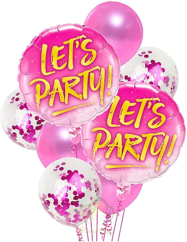Party Time 8-Pieces Pink Let's Party Balloons Set, Round Let's Party Foil Balloon, Mix Pink Latex Balloons and Confetti Blloons, Party Balloon Bouquet For Pink Theme Party Decoration - Birthday Party