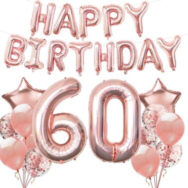 Party Time Best-Quality Rose Gold Birthday Party Decoration Happy Birthday Banner Rose Gold and Confetti Balloon Birthday Party Decorations For 18th 21st 30th 40th 50th Birthday - 60th Birthday Decora