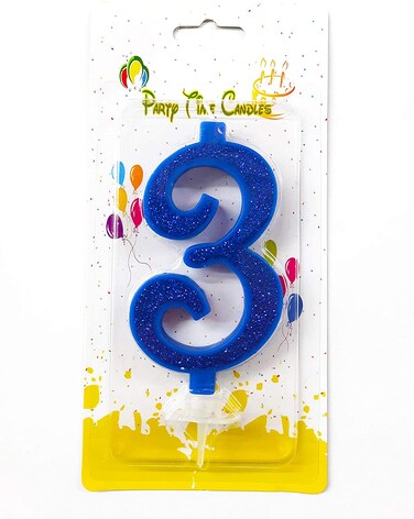 Party Time Glittery Blue Number 3 Birthday Candle Kids Adult Birthday Cake Decoration - Number Candle For Anniversary, Valentines Birthday Candle Cake Topper