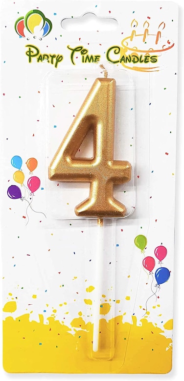 Party Time Gold Number 4 Birthday Candle Kids Adult Birthday Cake Decoration - Number Candle For Anniversary, Valentines Birthday Candle Cake Topper