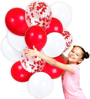 Party Time Pack of 30pcs Valentines Day Party Decoration Red and White Latex Balloons and White Red Confetti Balloons For Wedding Bridal Shower Birthday Valentine's Day Balloon Garland Decorations