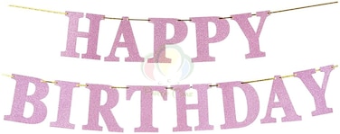 Party Time Pink Glittery Happy Birthday Banner Letter Cut-outs Paper Bunting Banner For Birthday Party Decorations - Party Supplies