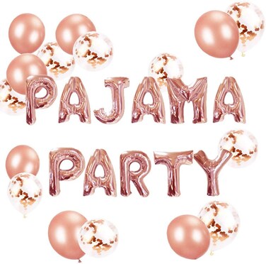Party Time Set of 21 Rose Gold PAJAMA PARTY Balloons PAJAMA PARTY Banner Pajama Party Decor Slumber Party Spa Party Balloons