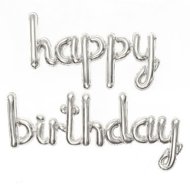 - Celebrate in style with this happy birthday balloon - Quick assemble in only 5 mins. Includes 1 happy birthday balloon string - for hanging glue dots - for attaching to wall straw - for inflating Inflated size: as pictured happy: 45cmx85cm & birthday: 45cmx124cm. Comes in the color of Shiny Silver