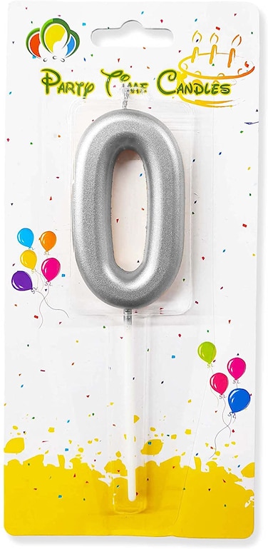Party Time Silver Number 0 Birthday Candle Kids Adult Birthday Cake Decoration - Number Candle For Anniversary, Valentines Birthday Candle Cake Topper