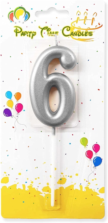 Party Time Silver Number 6 Birthday Candle Kids Adult Birthday Cake Decoration - Number Candle For Anniversary, Valentines Birthday Candle Cake Topper