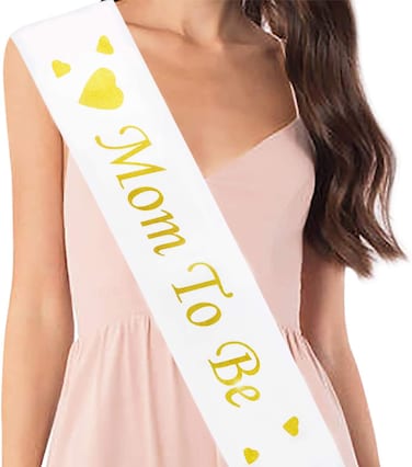 Party Time White & Gold Mom to Be Sash - Perfect for Baby Shower Decorations, Gender Reveal, Welcome Baby, Baby Sprinkle,(Mom to Be)