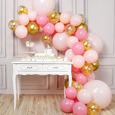 Partywoo Pink And Gold Balloons, 66 Pcs Pink Balloons, Metallic Gold Balloons, Pastel Pink Balloons And Gold Confetti Balloons For Pink Balloon Garland, 4 Pcs 8 Inch Giant Pink Balloons Included
