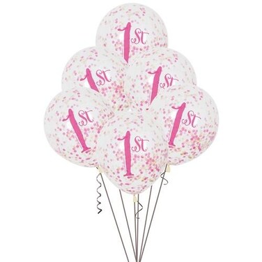 Pink & Gold First Birthday Clear Balloon With Confetti 12in