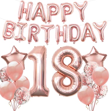 Rose Gold Birthday Party Decoration Happy Birthday Banner Rose Gold and Confetti Balloon Birthday Party Decorations Unique Decorations for 18th 21st 30th 40th 50th Birthday… (18th Birthday)…