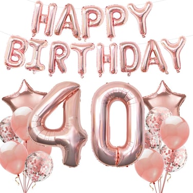Rose Gold Birthday Party Decoration Happy Birthday Banner Rose Gold and Confetti Balloon Birthday Party Decorations Unique Decorations for 18th 21st 30th 40th 50th Birthday… (40th Birthday)