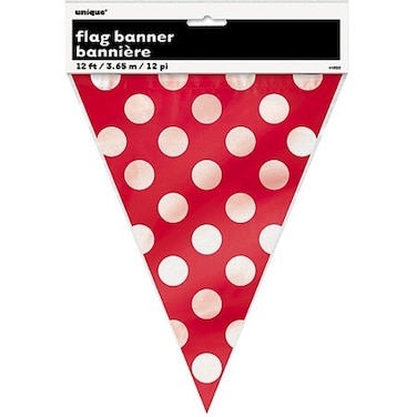 Unique Ruby Red Deco Dot Flag Banner 12Ft