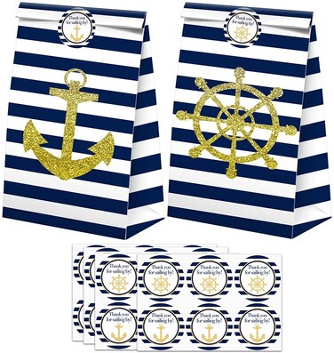 Package Includes: 24pcs nautical party bags +24pcs stickers.