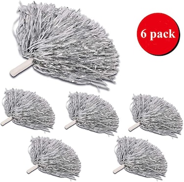 Sanlan - ( Slivery) - Sanlan Cheerleader Pom Poms 6Pcs Cheerleading Poms Metallic Foil Pom Poms Squad Cheer Sports Party Dance Useful Accessories
